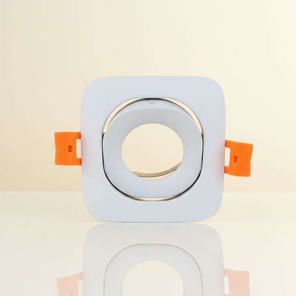 Le socle spot carré orientable bombé est un support d’éclairage encastrable conçu pour recevoir une ampoule type MR16 ou compatible GU10 avec une tête orientable afin de diriger le faisceau lumineux selon tes besoins.
